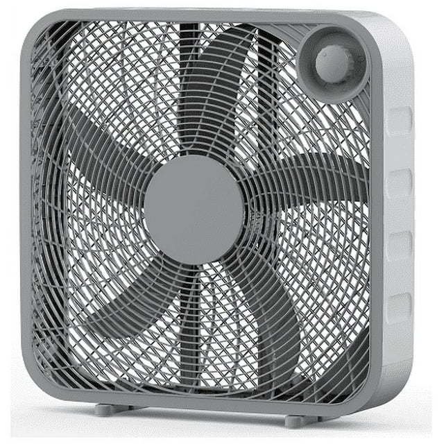 Introducing the reliable 20-inch box fan. Perfect for staying cool anywhere, like your office, living room, basement, dorm, or garage. It has five strong blades for steady airflow, helping you beat the heat. You can easily adjust your comfort with three speed options. It's designed for convenience, with built-in feet, cord storage, and an integrated handle for easy carrying. No tools needed for setup or maintenance. Get superior cooling with the unbeatable quality of the 20-inch box fan.