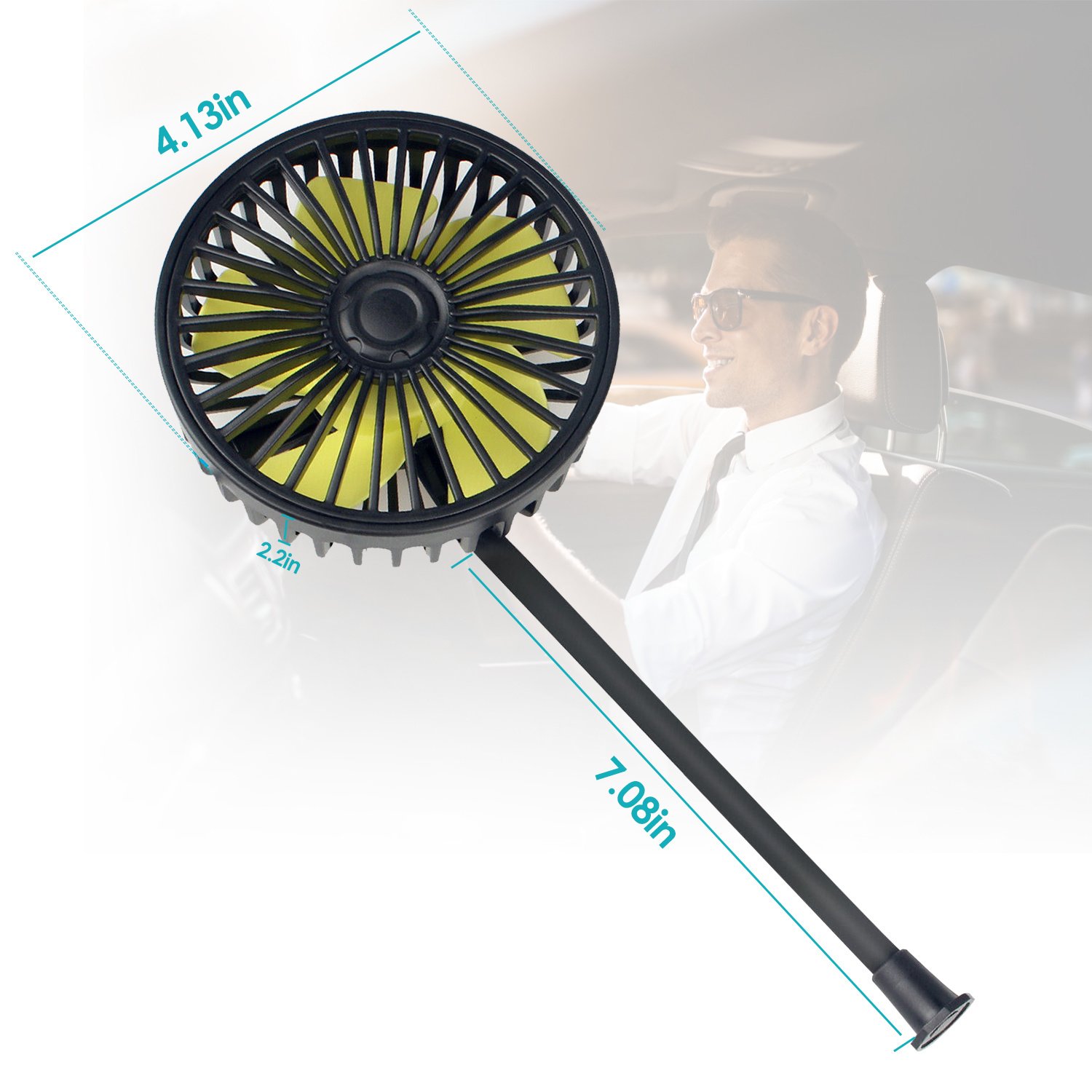 *360 º Rotatable Fan*:Made of premium,the rod can be folded as you wish. You can bent it to any angle you want,anywhere you need airflow. Or simply rotate the fan head to the direction you want,perfect summer solution for backseat passengers and drivers.