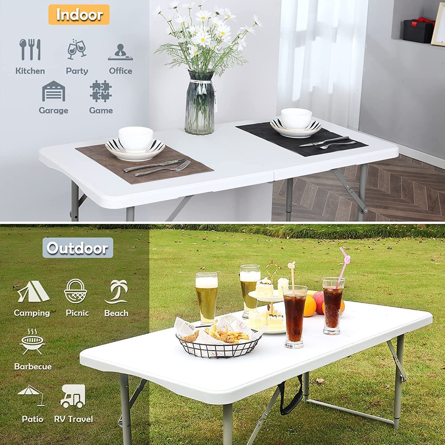 Folding Table use high-density polyethylene (HDPE) to make it stronger