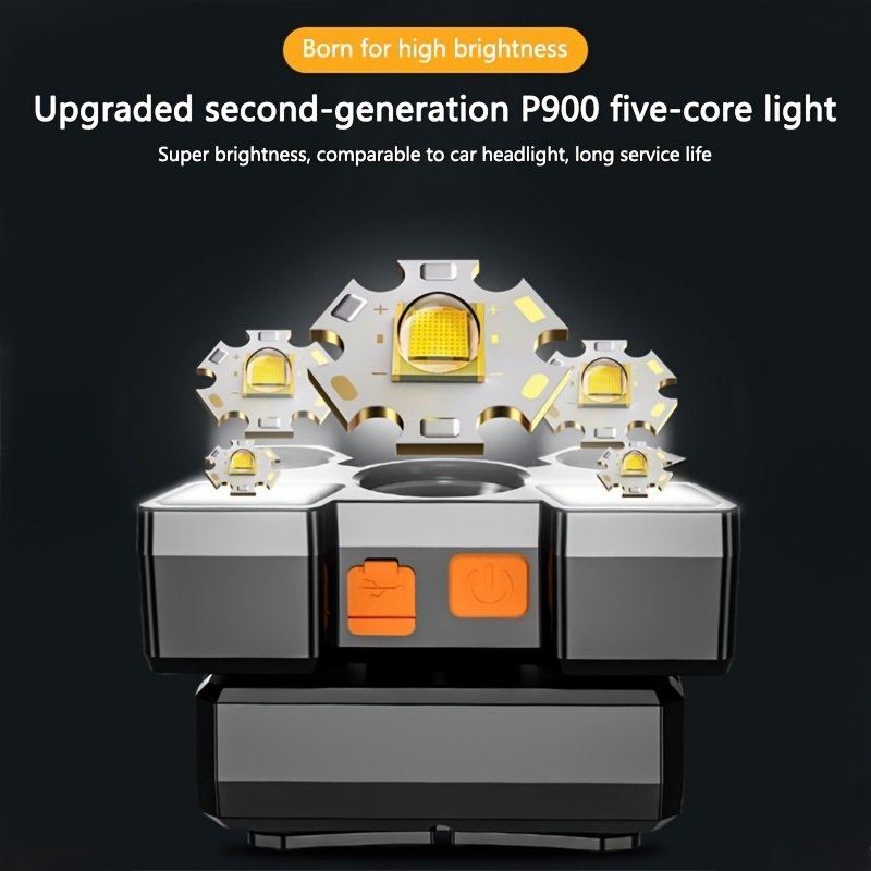 Home > 5 LED USB Rechargeable Headlamp; Portable Built-in 18650 Battery Head Flash Light; Waterproof For Expedition Outdoor Camping Fishing