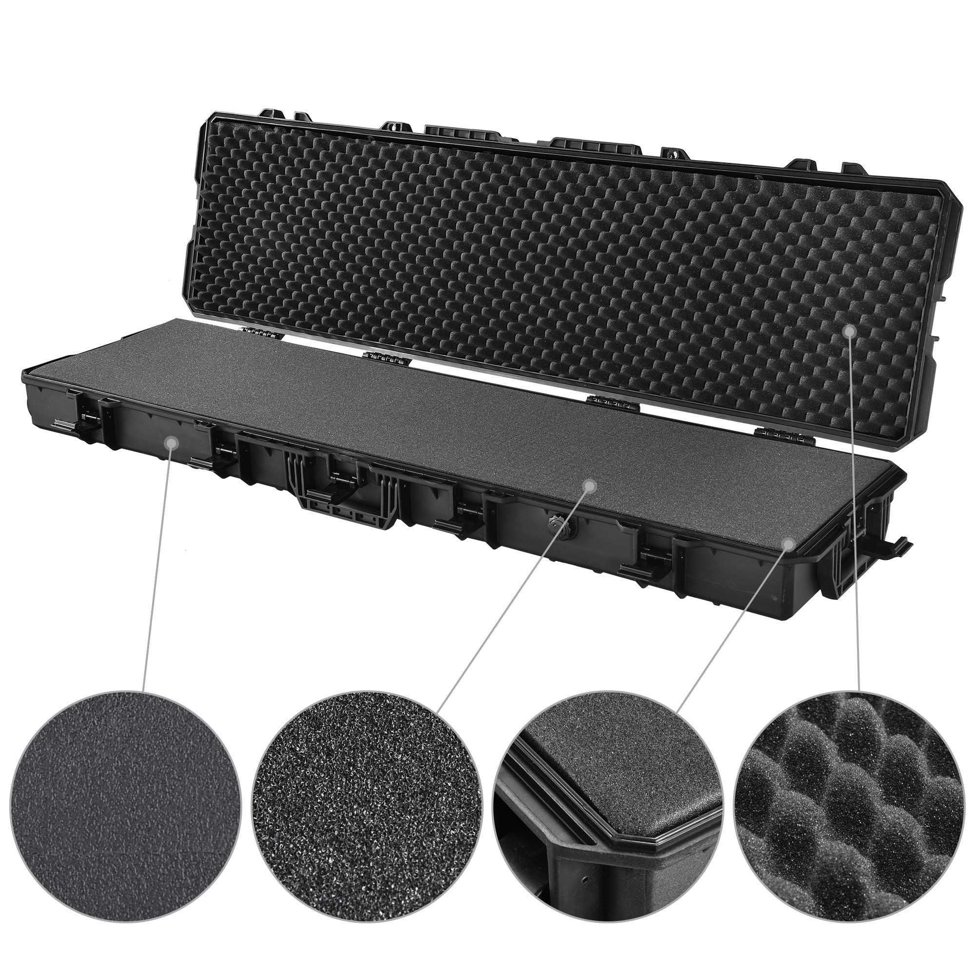 - Full Protection - Constructed of a strong and pressure-resistant PP outer shell; while including egg crate foam and customizable pick & pluck foam on the inside for protection from shocks and bumps to provide utmost security for your firearm; Features IP67 waterproofing thanks to its watertight sealing ring to guard your gun from damage by rain; moisture or dust