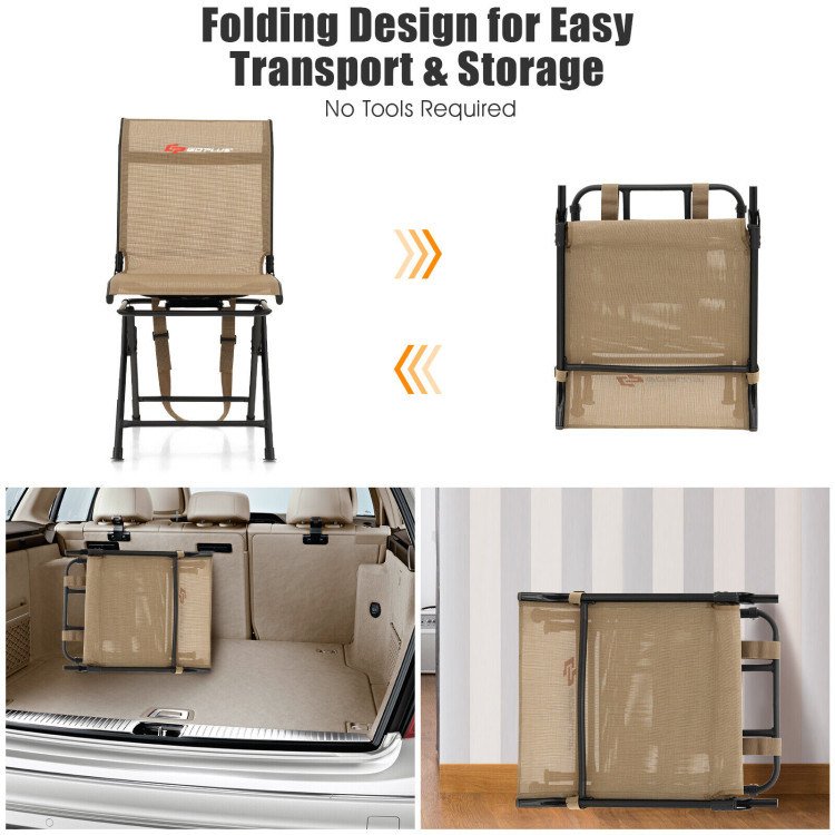 2.360 Degree Free Rotation: Thanks to its rotation function, you can sit on the chair and rotate freely according to your needs. 360-degree rotation allows you to easily focus on and keep track of your target, which is convenient for hunting. Besides, the metal connector helps you effortlessly turn to different positions.