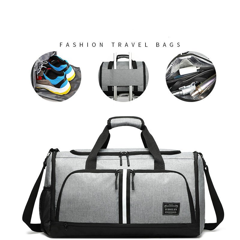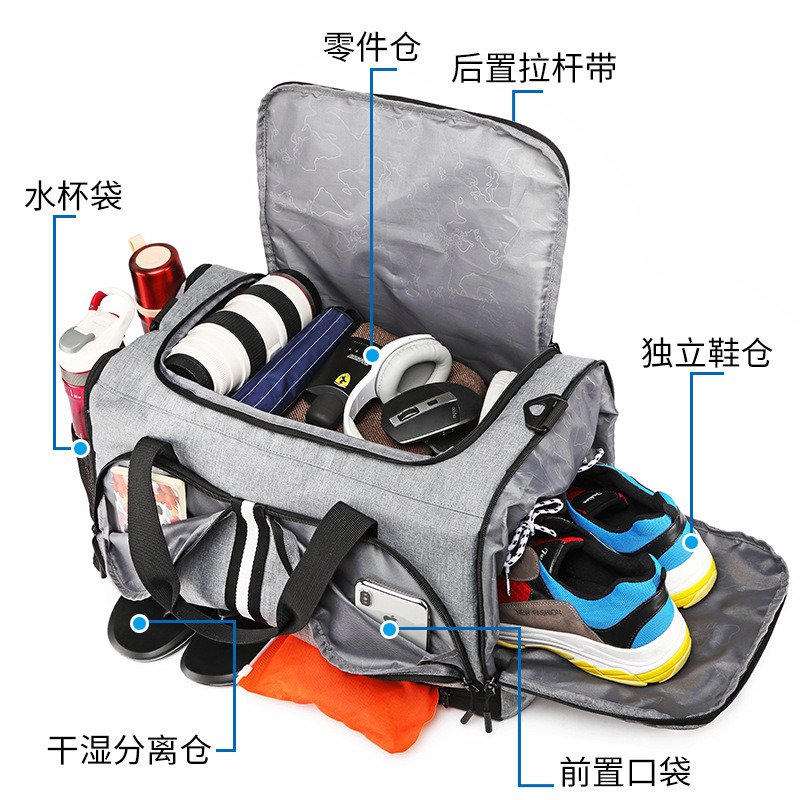 5.Lightweight & Packable - The sport bag has a main bag, a wet and dry separation bag, and independent bag of shoes on the right.They can hold enough products.A variety of bags for easy storage items.This sport bags is the best choice for travel and gym.