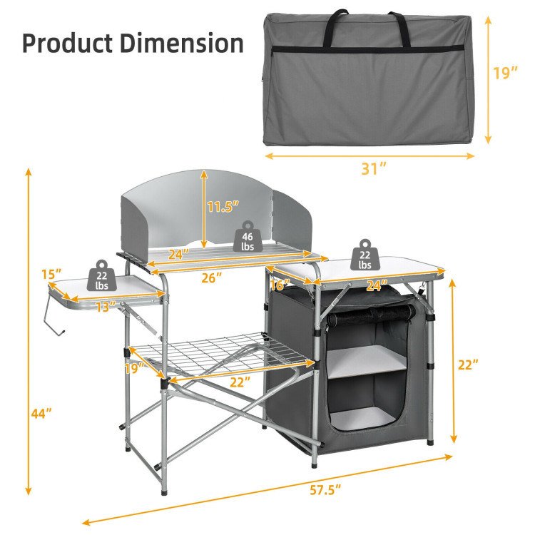 2.Sturdy and Durable Material: Made of a sturdy steel frame, heat-resistant aluminum, moisture-resistant MDF board and PVC bag, the table is of superior strength, durability and stability for last-long use time. And the weight capacity is 46 lbs on the tabletop and 22 on a side table, which can hold most of the utensils.