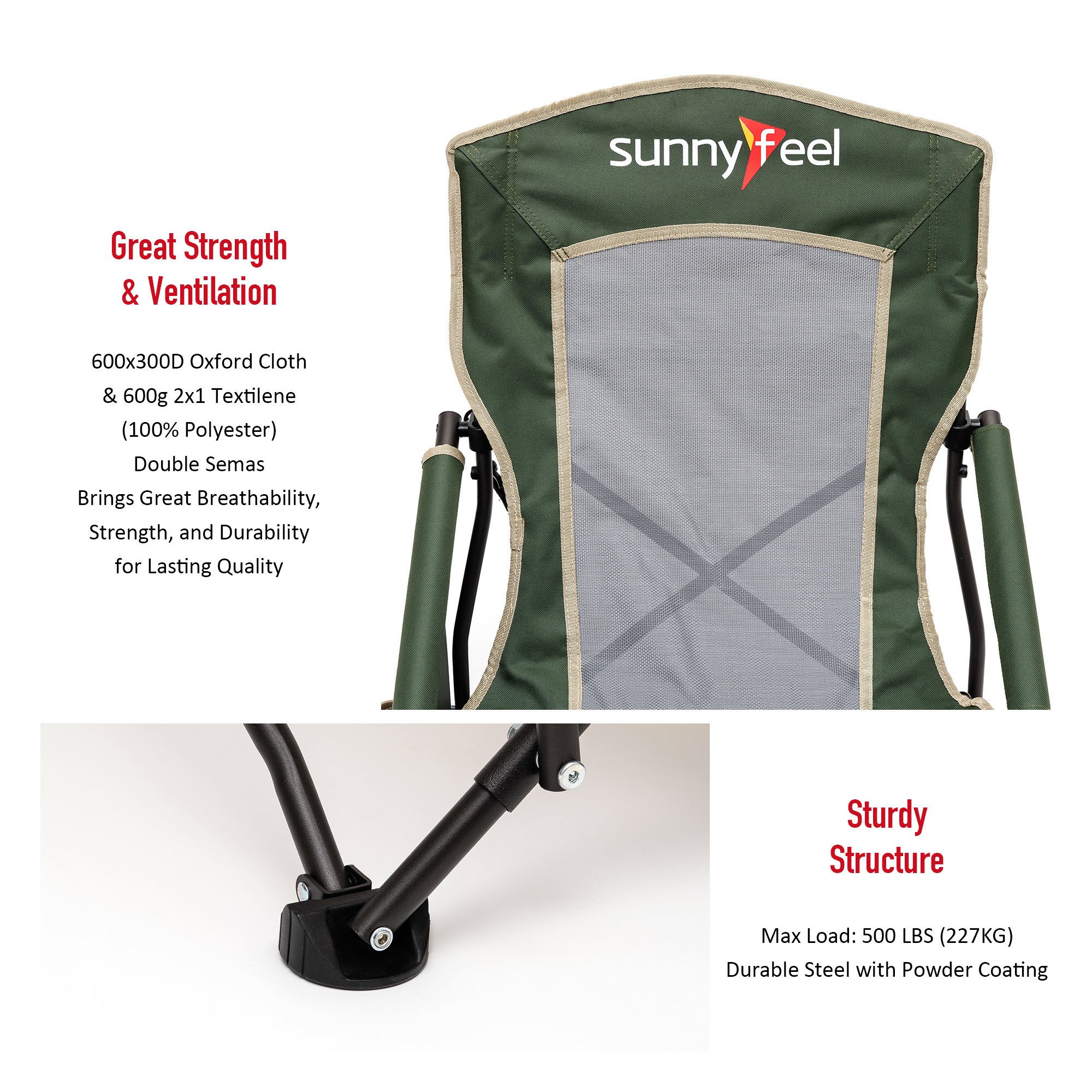 A Low Profile Sling Camping Chair that is Built for Anywhere: Use it as a camping chair, folding chair, lawn chair, travel chair, beach chair and more. Suitable for outdoor adventures, tailgating, fishing, backpacking, beach, picnic, sport games, car travelling, or just put it in the backyard, cabin, balcony, patio lawn parties. The SunnyFeel camping chair is an essential to add to your camping accessories.