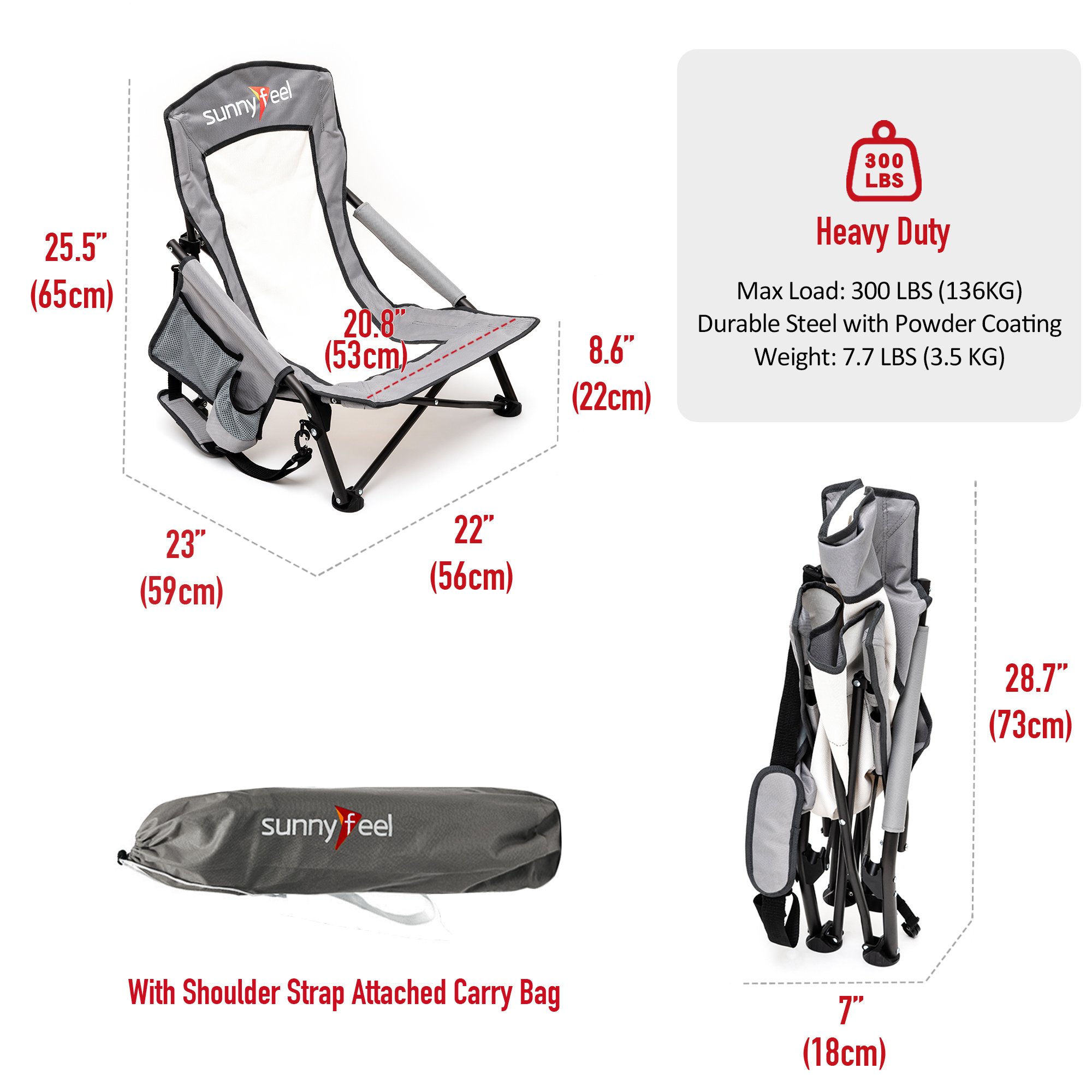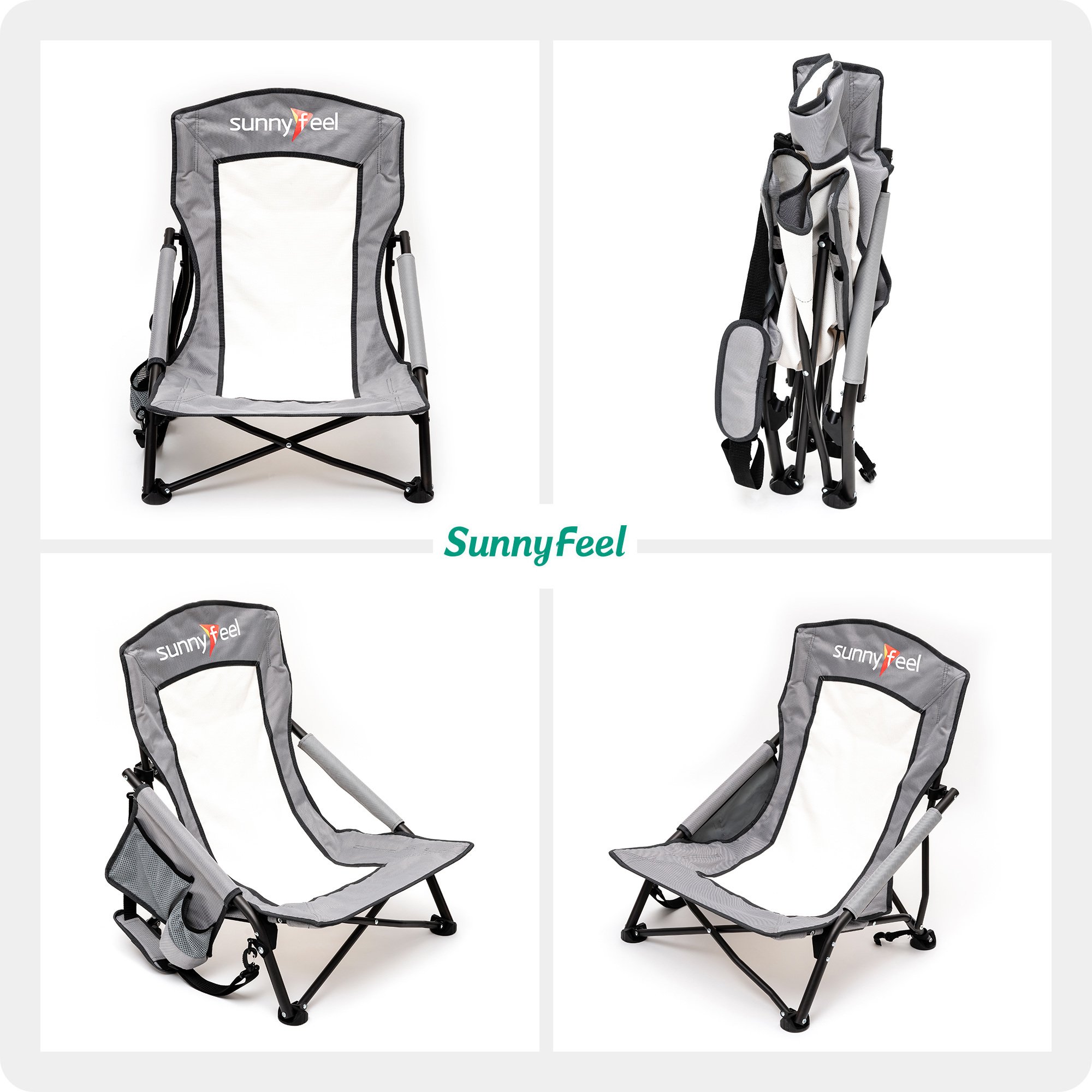 Extremely Comfy & Space Saving: The low seat beach chair seat & anti-sink leg cap & armrest design provide you an ultimate soft seating experience.The breathable and cooling mesh back design makes sitting for long comfortable for you. The small folding size (29×7.5×7 inches) saves your room while not on duty.