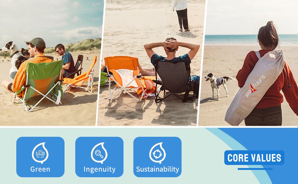 A Low Profile Sling Camping Chair that is Built for Anywhere: Use it as a camping chair, folding chair, lawn chair, travel chair, beach chair and more. Suitable for outdoor adventures, tailgating, fishing, backpacking, beach, picnic, sport games, car travelling, or just put it in the backyard, cabin, balcony, patio lawn parties. The SunnyFeel camping chair is an essential to add to your camping accessories.