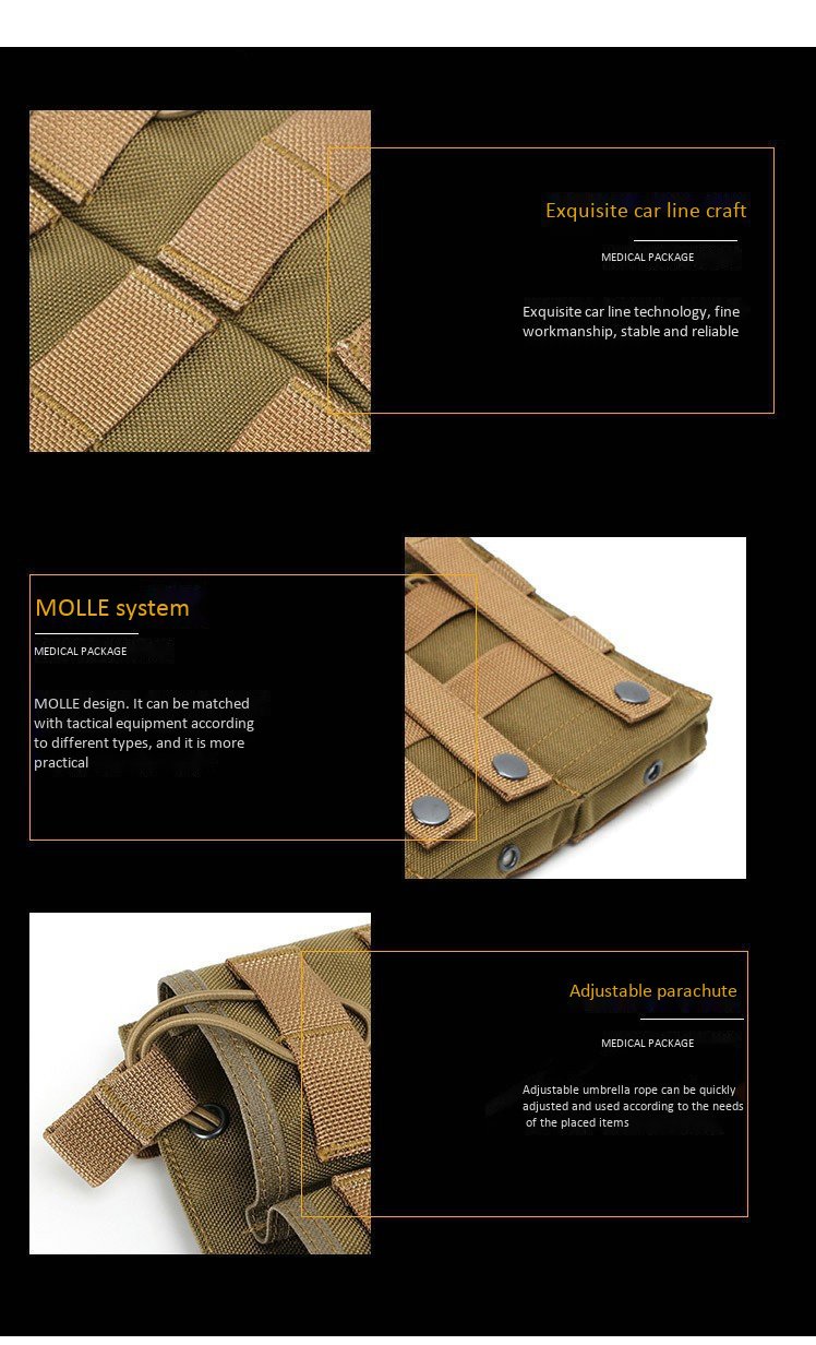 2.[MOLLE Straps] Four straps on the back are fully compatible with the standard MOLLE snap loops, which are easy to connect to the tactical belt, vest, bag,backpack, board carrier, chest drill, or lower leg platform for easy carrying.