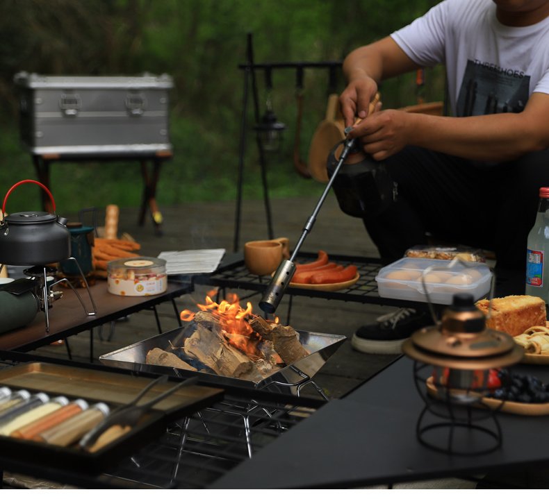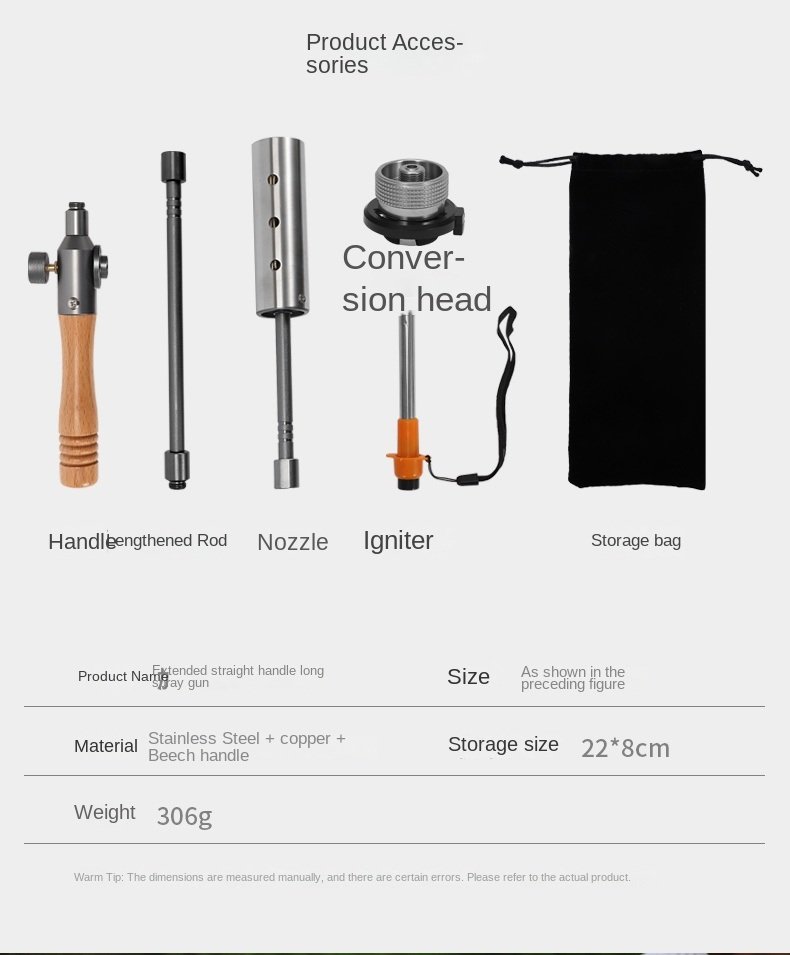 Outdoor camping extended flame-throwing gun stainless steel gun burning pig hair supplies camping straight handle handheld detachable igniter
