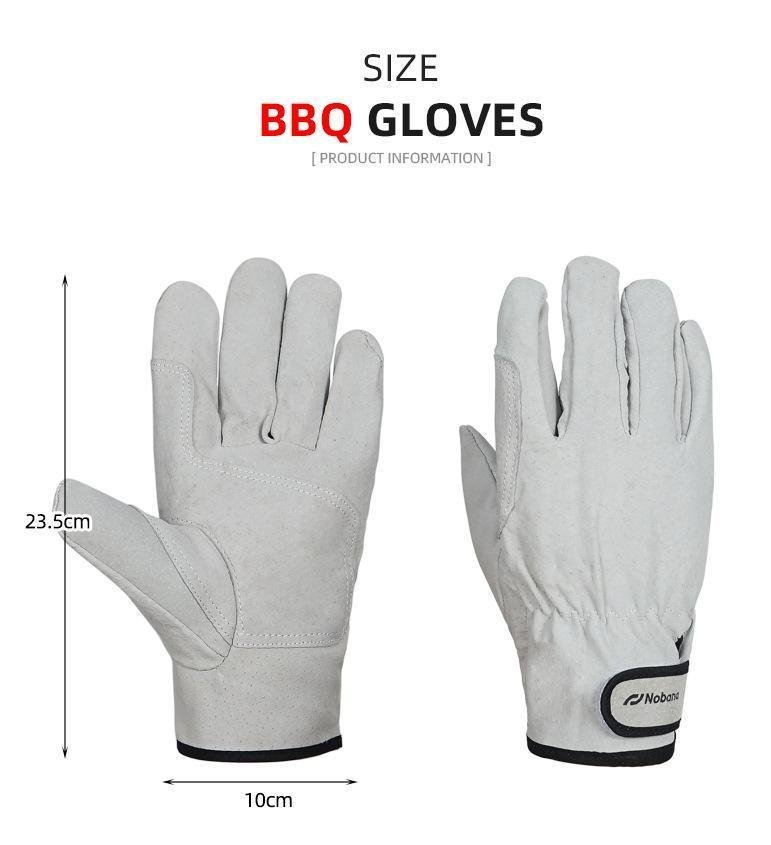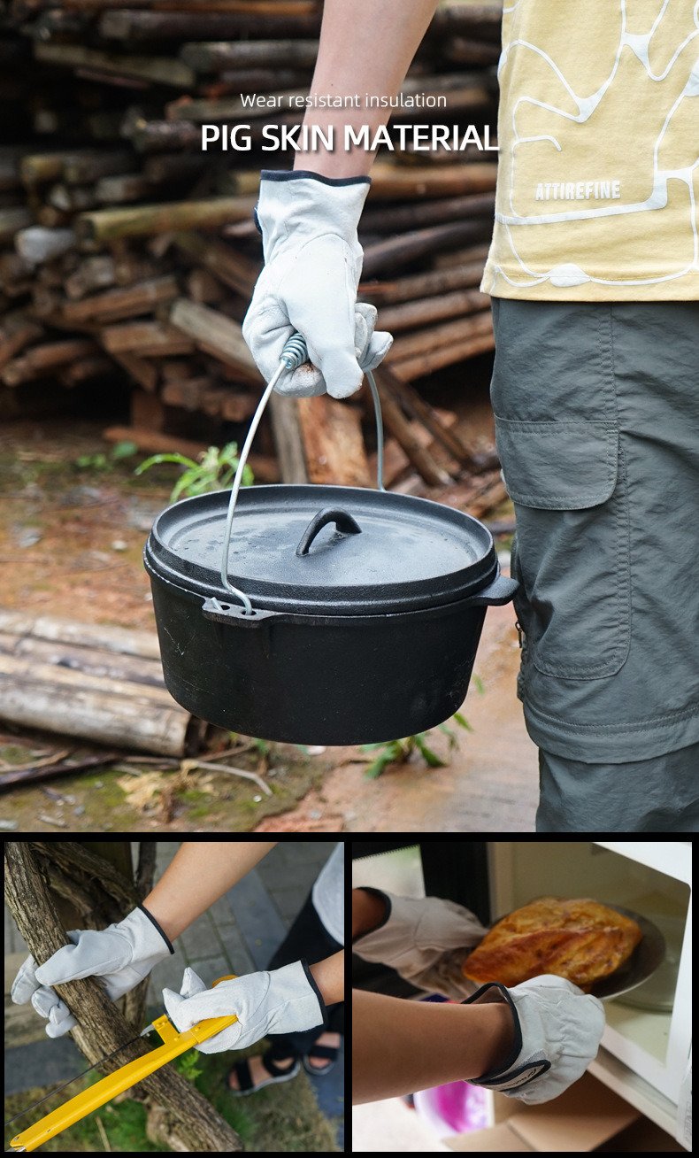 Outdoor picnic BBQ gloves camping fire barbecue cowhide heat insulation thickening wear pigskin breathable labor protection gloves