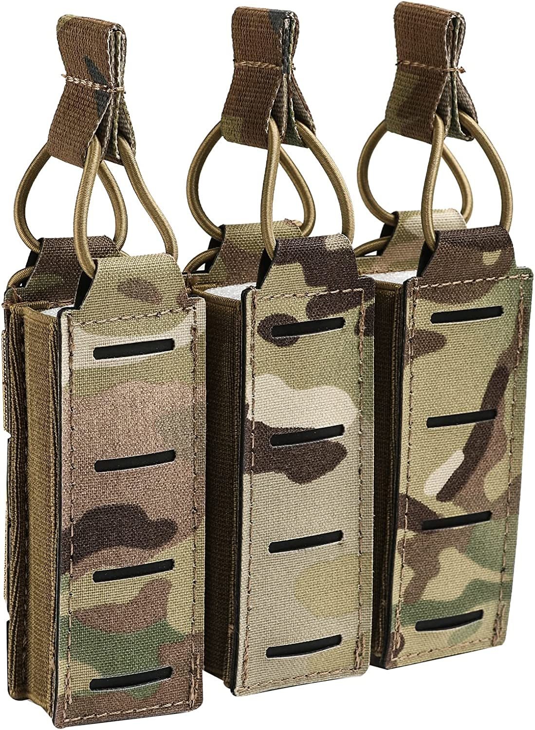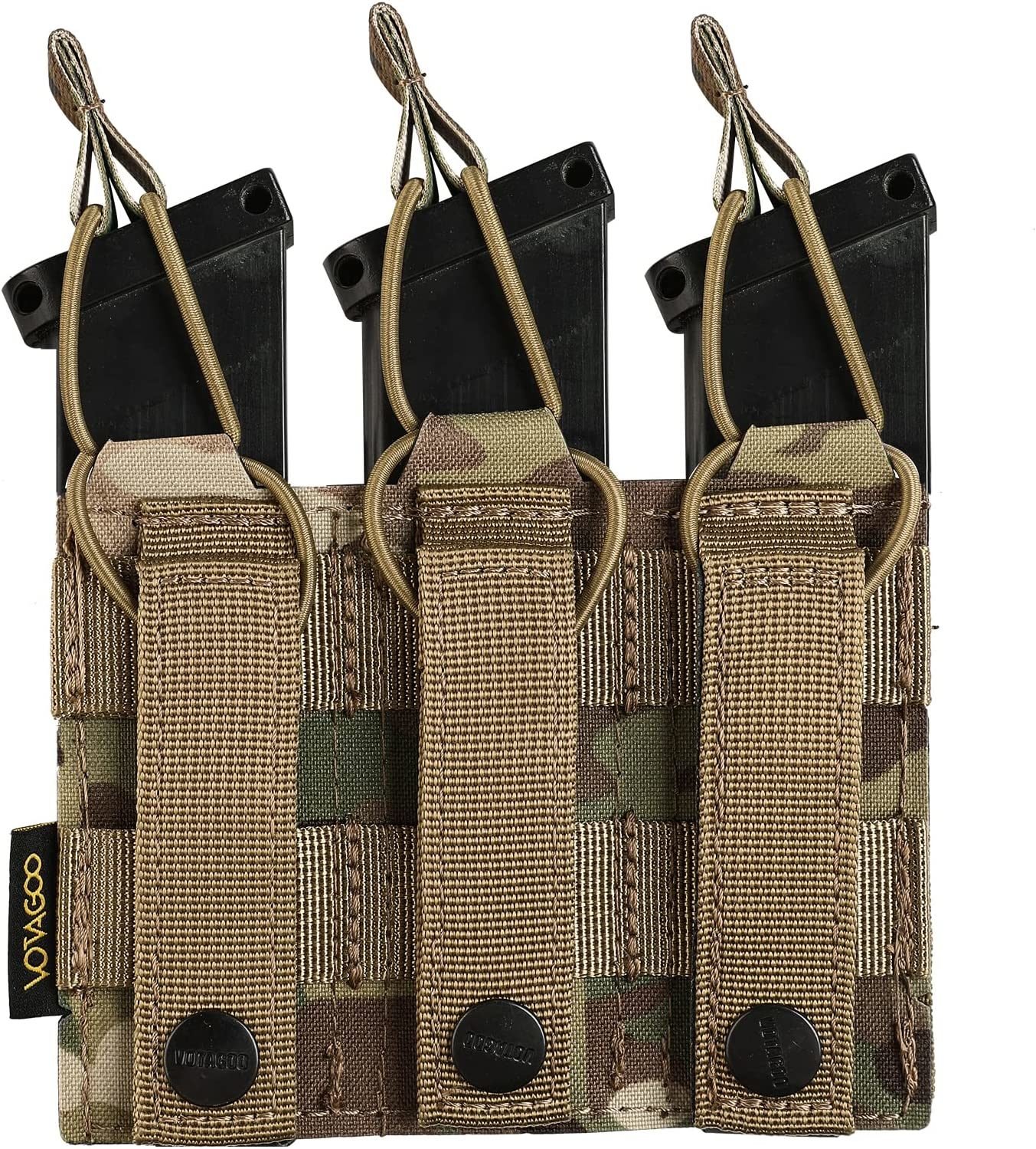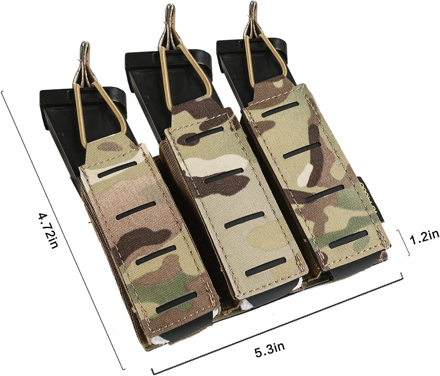 Quickly Switch: Open top design with bottom drain holes at the bottomSecured in Place : Adjustable elastic band secures different size magazines.With Molle Design: Compatible with all molle modules; tactical vests; backpacks; belts; etc.Pistol Mag Pouch: It holds 1/2/3 magazines and is suitable for most small caliber pistol magazines 1911 DD21Made of tough 500D Nylon; Single Size: 1.9x4.3x1.2inch(4.8x11x3cm); Double Size: 3.8x4.3x1.2inch(9.6x11x3cm) ; Triple Size: 5.7x4.3x1.2inch(14.5x11x3cm)