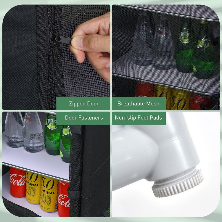 1.Spacious Storage Space: Featuring 1 large tabletop and 6 practical shelves, this outdoor camping table comes with ample storage space so that you can put different belongings, such as food, tableware and others, making them within reach. Likewise, there are 2 zippered bags to keep food clean and hygienic.