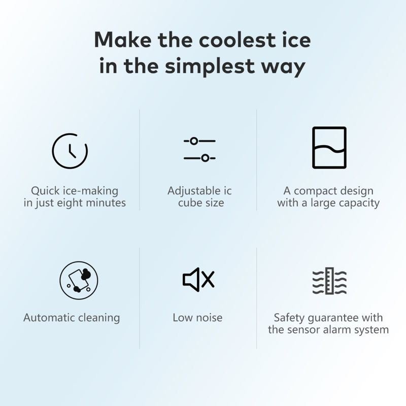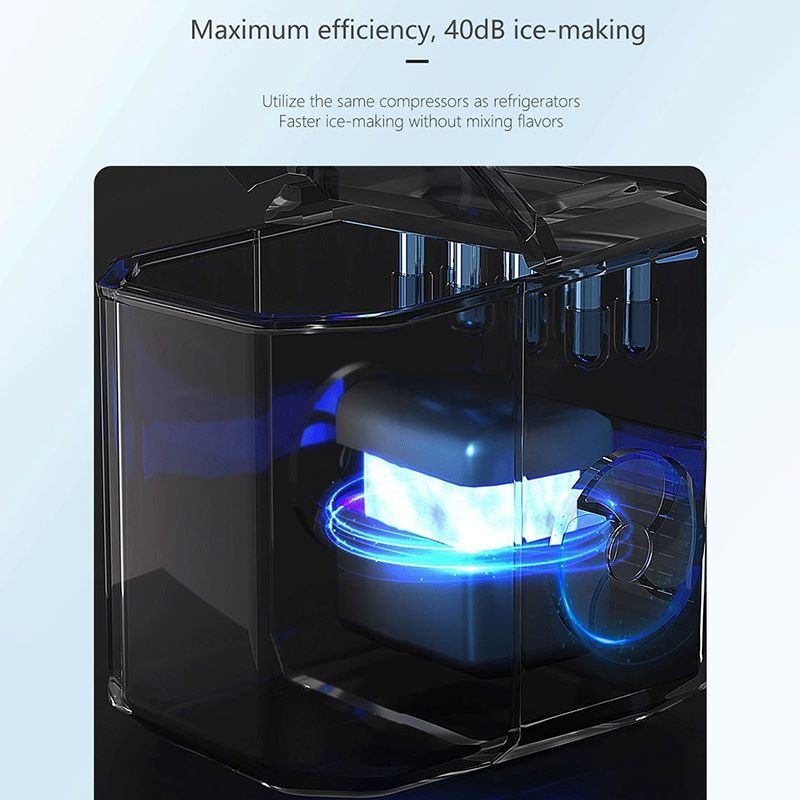 3.This desk countertop ice maker can produce 9 bullet-shaped ice cubes in just 6-10 minutes.