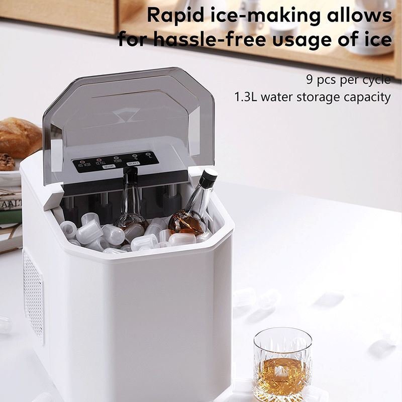 3.This desk countertop ice maker can produce 9 bullet-shaped ice cubes in just 6-10 minutes.
