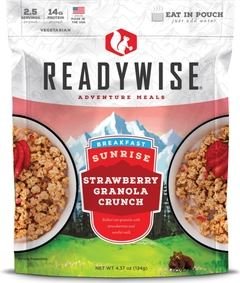 Each pouch of Sunrise Strawbery Granola Crunch contains 2.5 servings and is resealable. These pouches are lightweight making the easily portable for any outdoor adventure. Just add water and you can eat directly from the pouch.