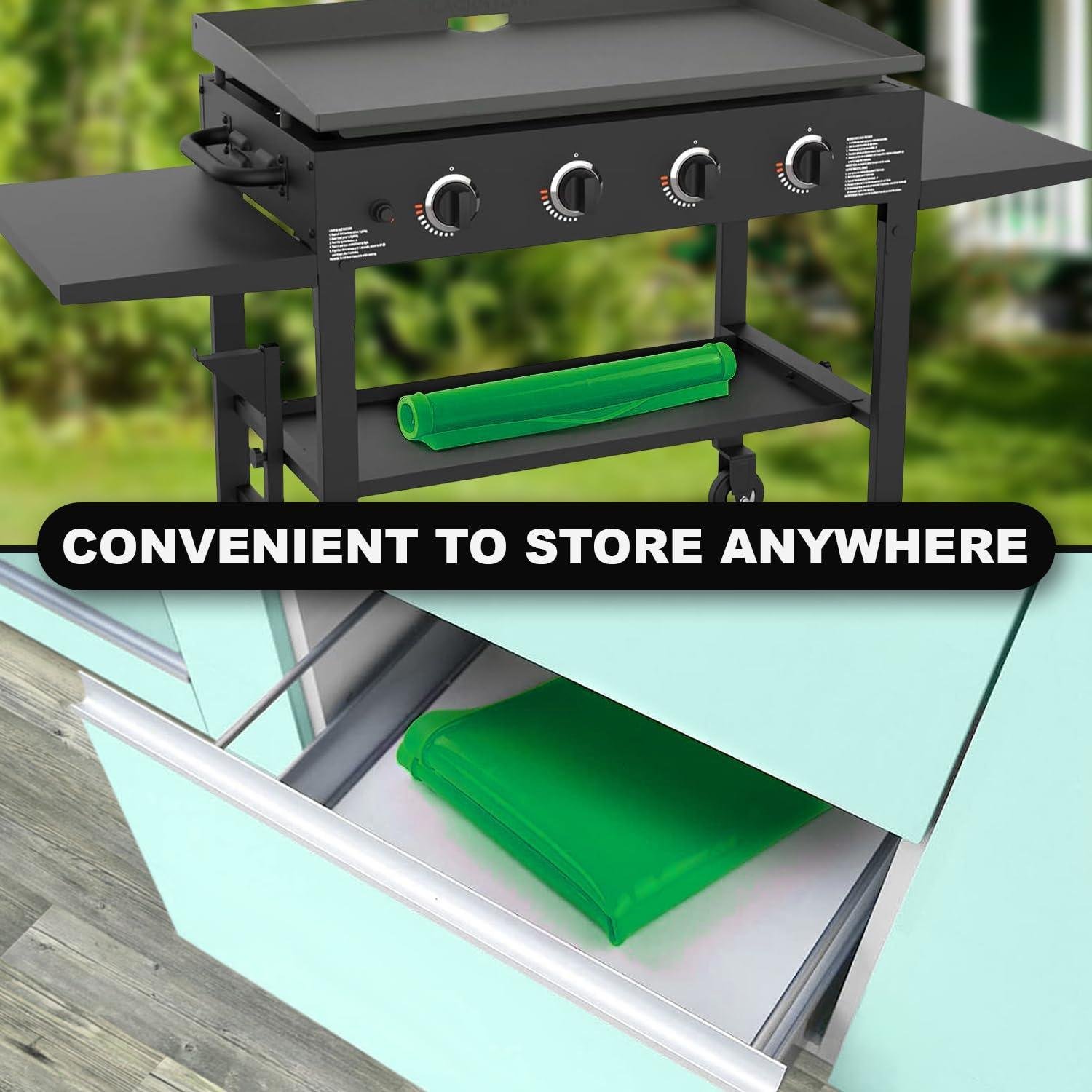 Silicone Griddle Mat Food Grade Silicone Grill Mat Protect the Top Surface from Insects 36 inch Green Color with Silicone Utensil Rest