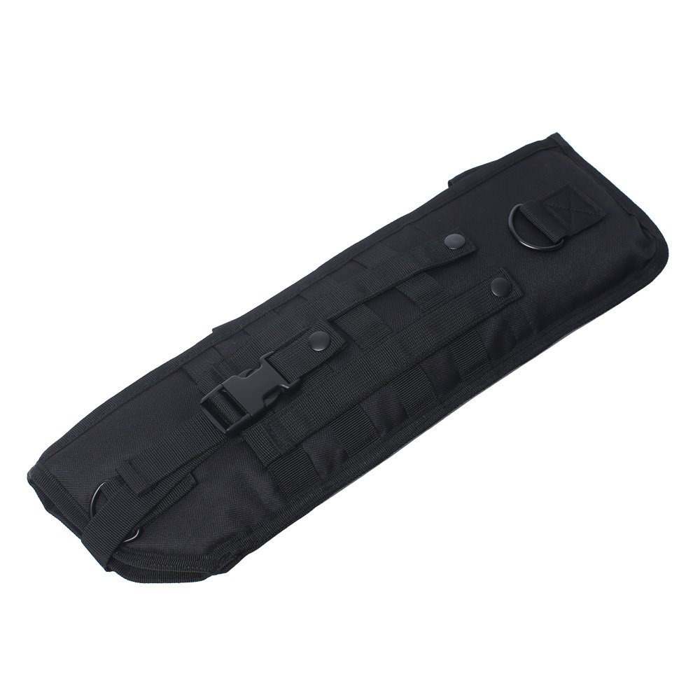 This is Tactical Shotgun Scabbard have two MOLLE straps on each side allow for ambidextrous mounting to your entry vest, plate carrier or chest rig. The weapon can also be slung with the padded, adjustable, and removable shoulder strap. The scabbard is padded to protect the weapon in tight spaces.